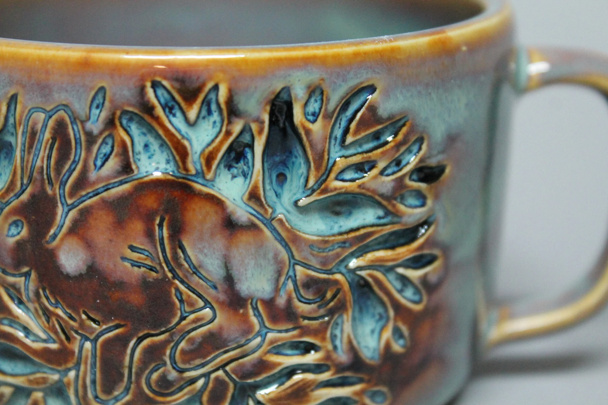 These bunny themed vessels were made as a collaboration with Jennifer Sneary, who designed the bunny and foliage image that I then carved into each piece. Jennifer has her own website (link below) where you can find beautifully drawn and printed images with magical imagery and fantastical animals!